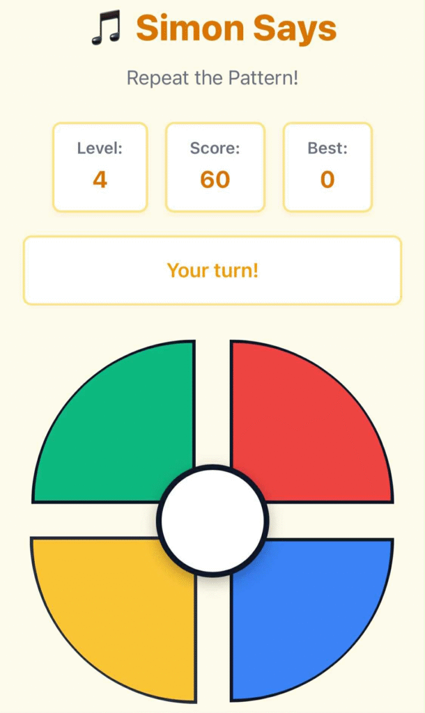 Simon Says is a simple yet powerful brain-training game. With clear visuals, easy mechanics, and rising difficulty, it delivers both entertainment and mental benefits.