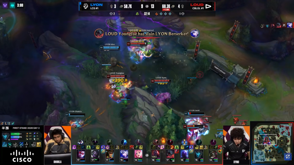The match between LYON and LOUD at First Stand 2026 was one of the most exciting series of the event. Overall, it took place on March 17, 2026, during the second day of the group stage.