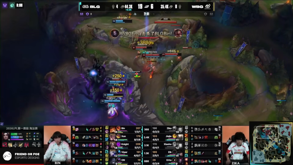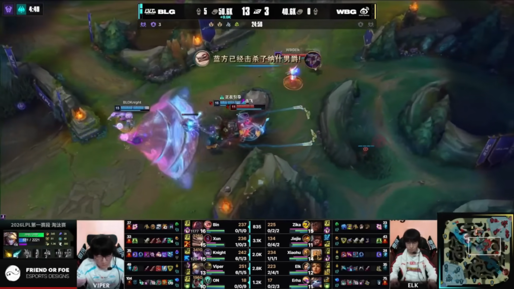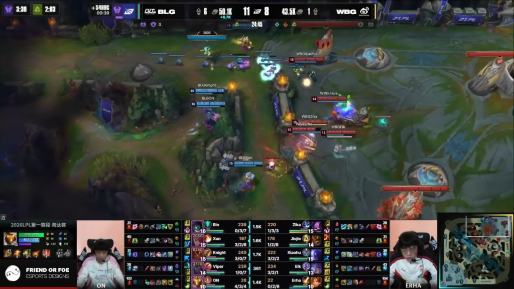 After that, BLG shifted into full attack mode. With Baron buff, they pushed multiple lanes. As a result, they destroyed WBG’s outer turrets and gained map control.