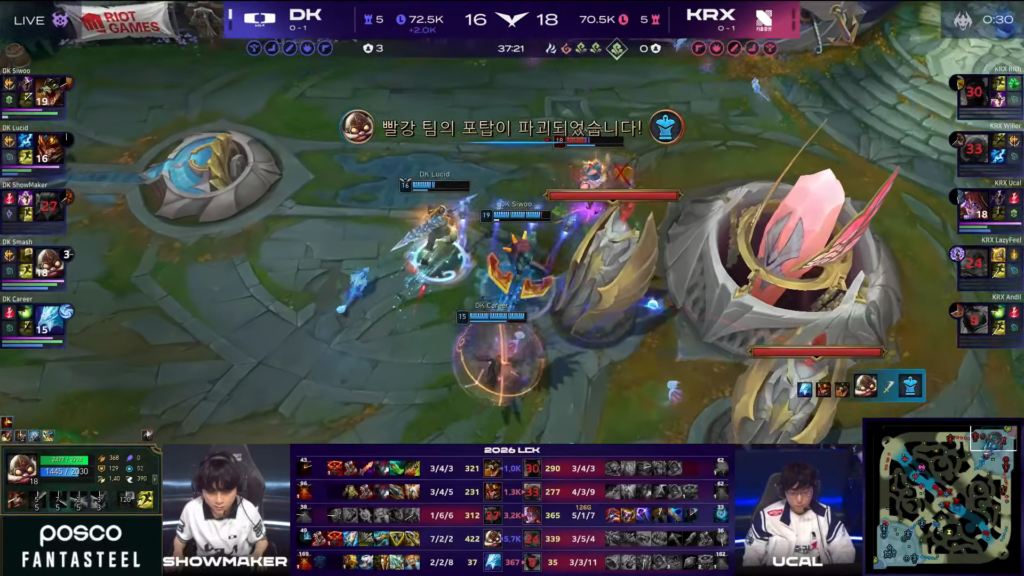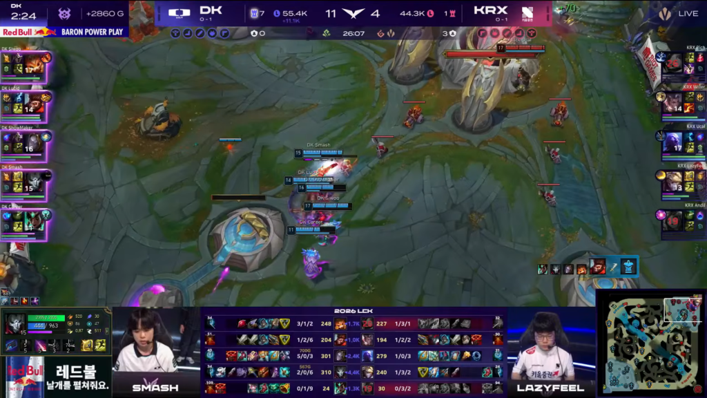 As a result, DK gradually suffocated KRX’s movement across the map. Skirmishes consistently favored DK thanks to their item advantage.
