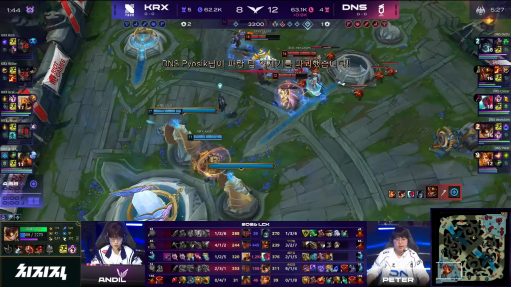 DNS then stole a crucial dragon and followed it up with a clean teamfight win, wiping out KRX. With that momentum, they moved to Baron and secured it.