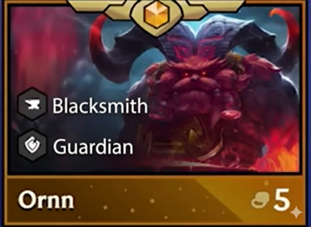 Ornn is a powerful 5-cost frontline initiator with massive AoE damage and double-impact crowd control. His ability, Call of the Forge, summons a legendary ram that charges across the battlefield twice, disrupting enemy formations and dealing significant magic damage.