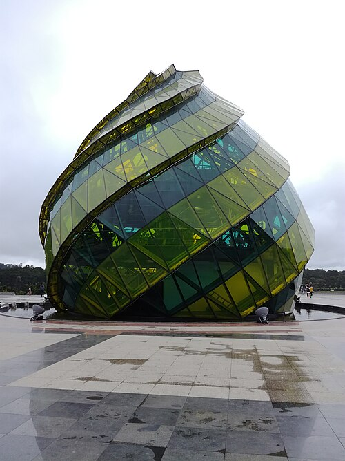 It features three triangular roofs inspired by the Langbiang Mountains and traditional Central Highlands houses.