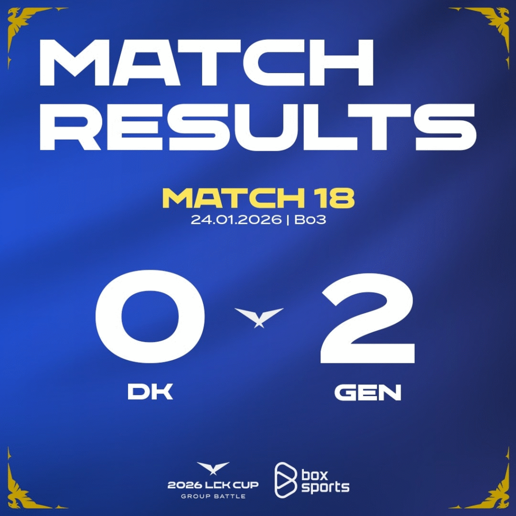 Gen.G 2–0 DK — a complete victory from draft to execution. Gen.G remain unbeaten at the LCK Cup 2026 and strengthen their status as title contenders. DK, despite strong earlier results, couldn’t withstand Gen.G’s disciplined and flexible playstyle on the day.