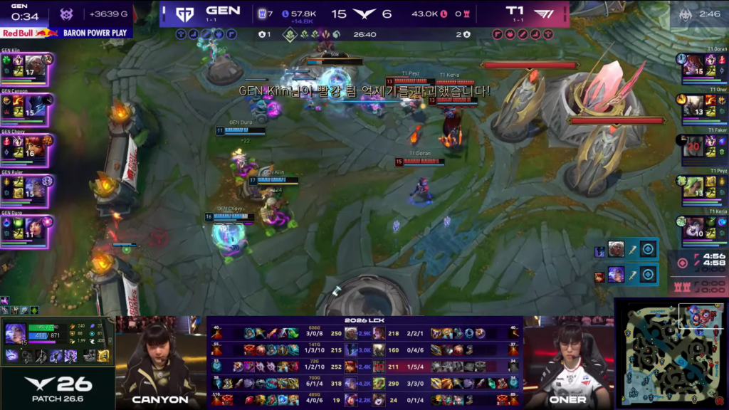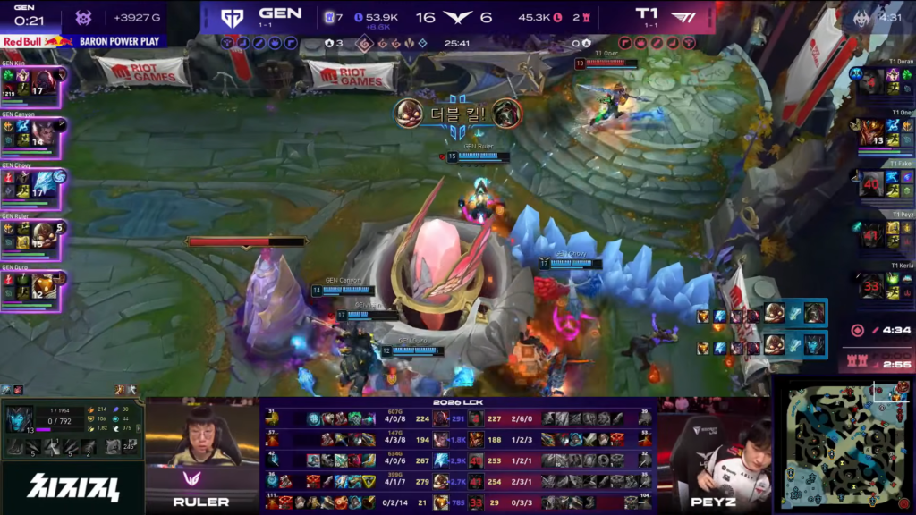 From that point onward, Gen.G demonstrated strategic dominance. They secured both Baron and Elder Dragon, effectively suffocating any comeback potential from T1.