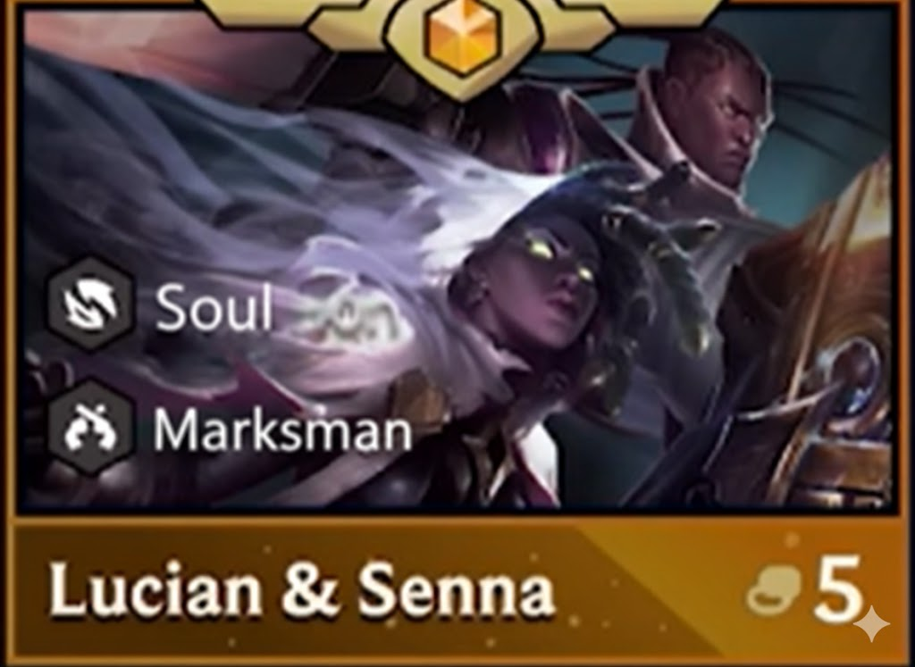 Lucian & Senna are a powerful 5-cost duo with exceptional AoE physical damage thanks to The Culling. With rapid multi-shot bursts, explosive impacts, and full armor shred when interacting with Black Mist, they excel as late-game AD carries capable of shredding both frontline and backline at once.