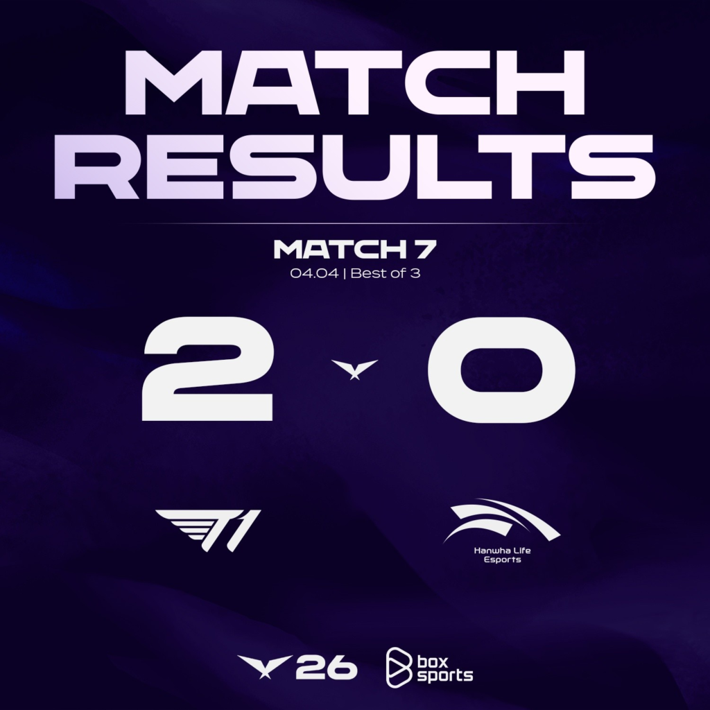 The match between T1 and HLE on April 4, 2026, at LCK 2026 ended in a clean 2-0 victory for T1.
