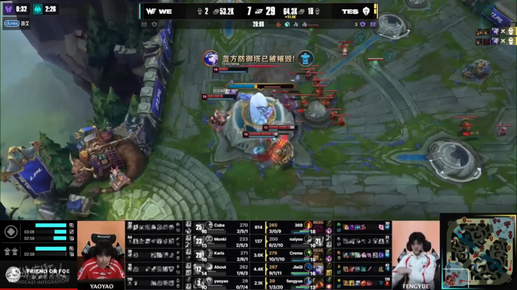 Then, TES secured Baron. Immediately afterward, they pushed into WE’s base. Since WE lacked defensive power, they could not stop TES.